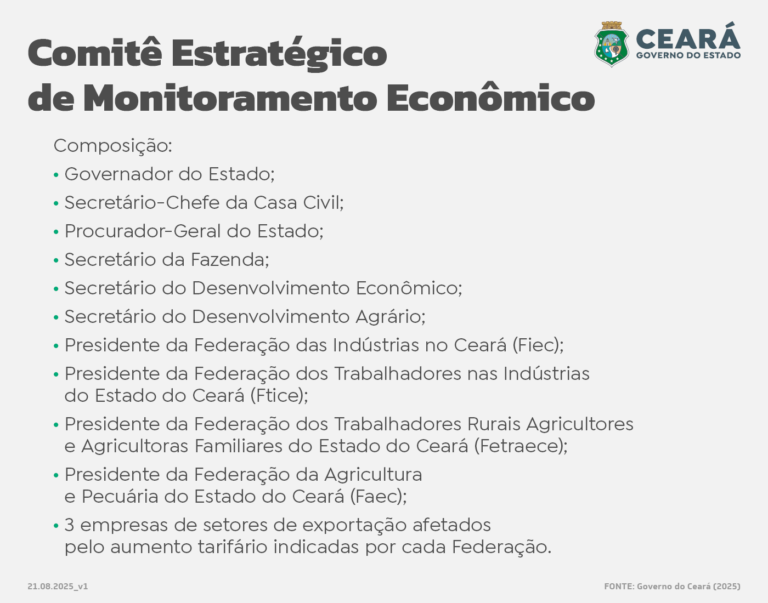 Em resposta, o presidente da Fiec, Ricardo Cavalcante, parabenizou o governador pela rapidez na reação ao tarifaço. De acordo com ele, as medidas vão beneficiar setores que concentram cerca de 100 mil empregos.