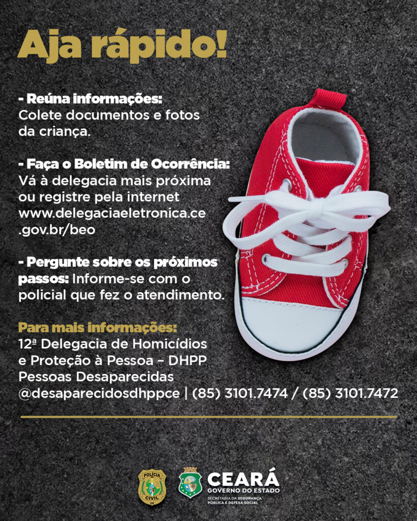 Como parte das ações de enfrentamento à pessoas desaparecidas no Ceará, a Secretaria da Segurança Pública e Defesa Social (SSPDS-CE) assinou, em agosto do ano passado, um termo de pactuação com o Ministério da Justiça e Segurança Pública (MJSP), manifestando interesse em participar do Projeto de Busca de Pessoas Desaparecidas. Com a assinatura, o Ceará tornou-se um dos dois estados brasileiros, além do Distrito Federal, a participar da iniciativa desenvolvida pela Secretaria Nacional de Segurança Pública (Senasp/MJSP). O alerta é disparado pela Meta, responsável pelo Facebook e Instagram, para auxiliar nas buscas de crianças e adolescentes.